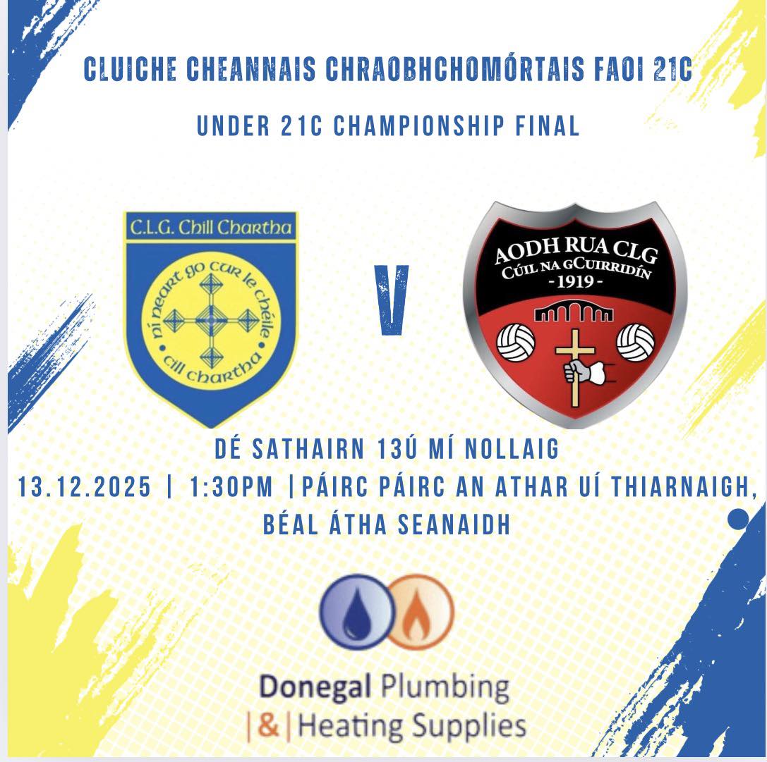Tabhair faoi deara le do thoil go mbeidh ár gCluiche Ceannais Craobhchomórtais Faoi 21 ar siúl anois i bPáirc an Athar Tierney, Béal Átha Seanaidh.